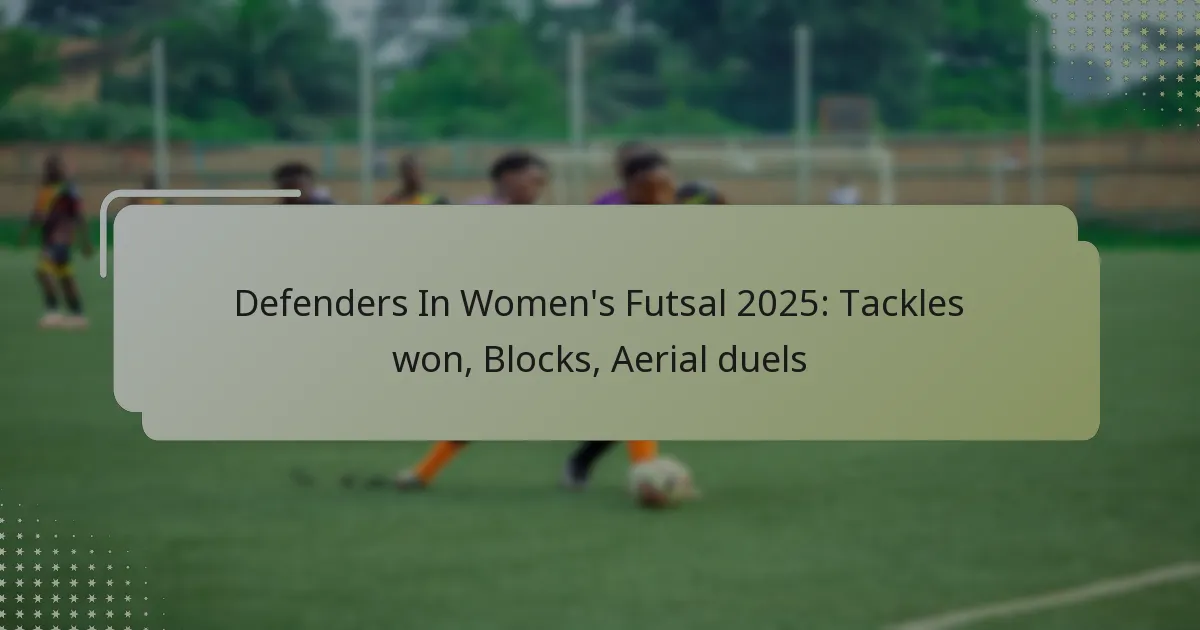 In women’s futsal 2025, defenders play a pivotal role in shaping the outcome of matches through key metrics such as tackles won, blocks, and aerial duels. These statistics not only highlight individual contributions but also reflect the overall defensive strength of a team. By excelling in these areas, defenders can effectively disrupt opponents’ plays and minimise scoring opportunities, thereby enhancing their team’s chances of success.